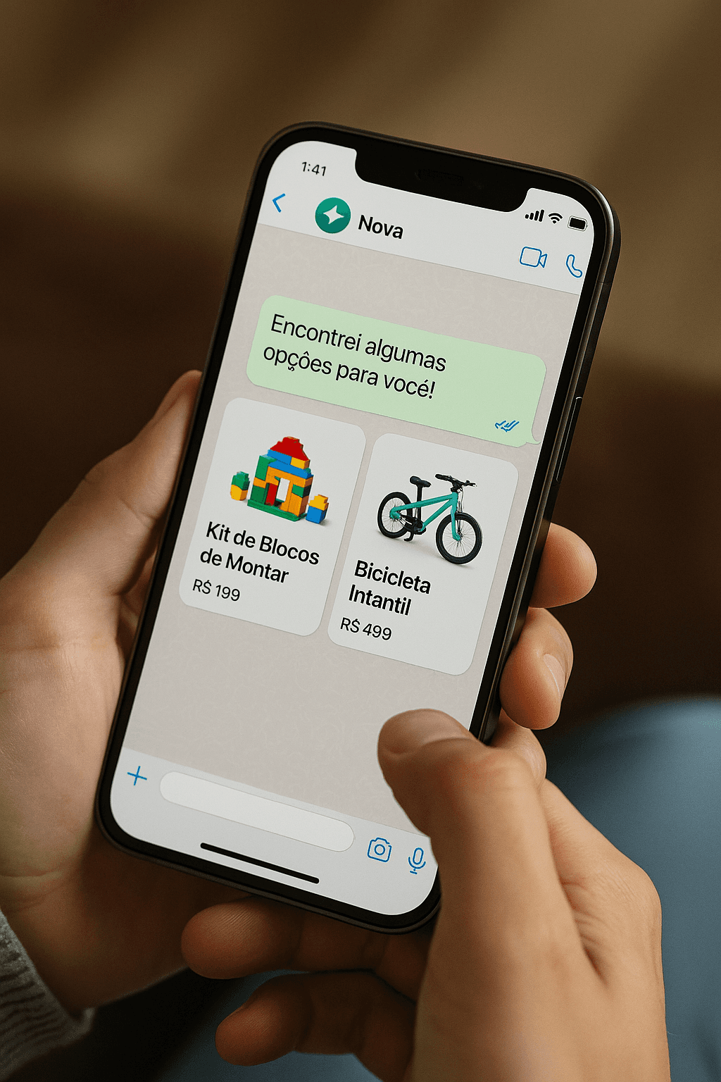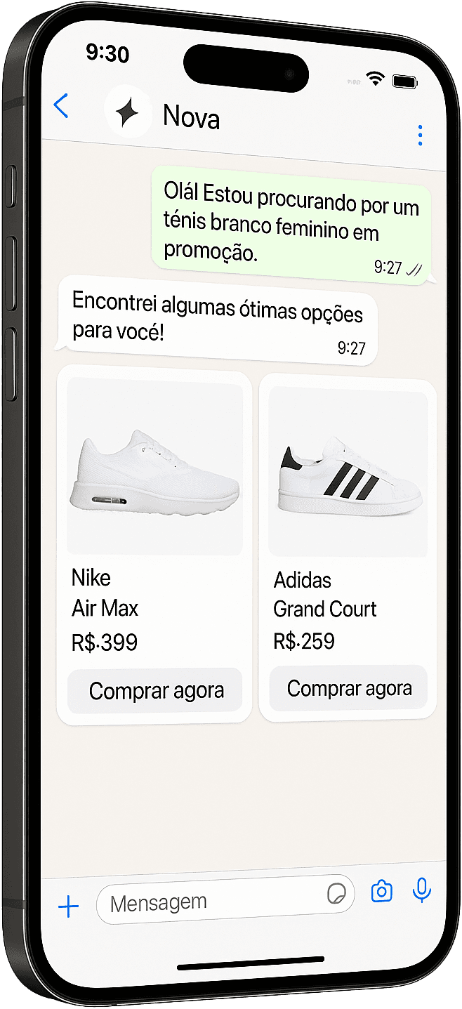 Descubra, compare e conclua suas compras sem sair da conversa.