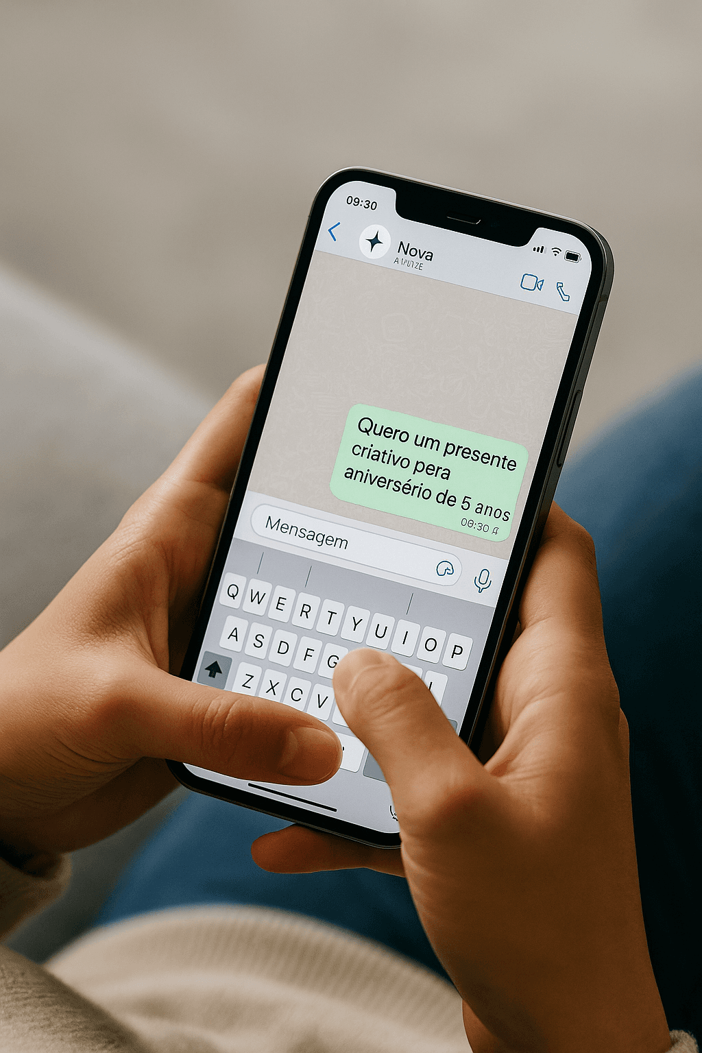 Nossa IA conversa, aprende suas preferências e encontra as melhores ofertas.